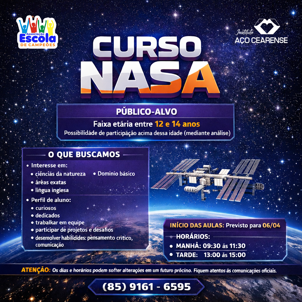 A Associação Escola de Campeões, em parceria com a Space Young Leaders, o Brazil Young Leaders e o Space Center Houston, abre inscrições para o Módulo 02 do Curso NASA.